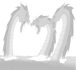 Kl: Er hat zwei oder drei normale Köpfe, die nicht böse aussehen und zwei Köpfe, die total böse aussehen. |
