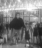 Eine Frau aus dem Publikum fliegt auf seinen Armen.